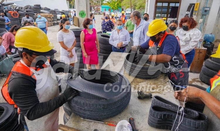Como parte de esta visita, junto con autoridades cozumeleñas, la funcionaria recorrió el centro de acopio para conocer las acciones que se realizan ahí, sobre todo el área de neumáticos donde los colaboradores realizaban el proceso para ser empacados y enviados a la planta de Geocycle en Tabasco.
