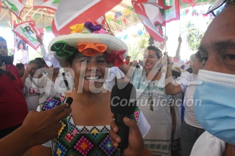 La candidata al arribar al domo de la localidad fue recibida por un grupo jaranero y de maya pax, así mismo por mujeres con vestimenta de hipil quieres bailaron a ritmo de las melodías previo a la intervención de la candidata.