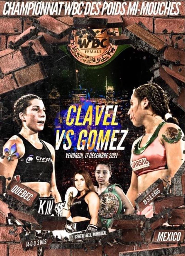 Yesenia Gómez (19-5-3, con seis nócauts) de 26 años de edad, realizará la quinta defensa del su título de las 108 libras (49 kilogramos) ante la invicta Kim Clavel (15-0-0, y tres nócauts), después de exponerlo ante la japonesa Erika Hanawa (febrero 16 del 2019), la mexicana Ana Victoria Polo (junio 29 del 2019), la venezolana Débora Rengifo (octubre 26 del 2019), y la mexicana Mirna Sánchez (octubre 31 del 2020).