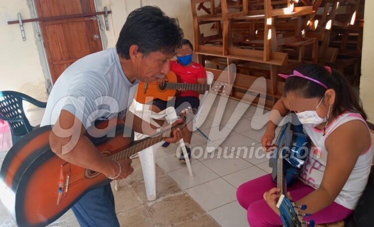 “La idea es, primero, que aprendan lo básico de la guitarra, que saquen algunas notas musicales y, posteriormente, continuamos con el teclado, timbales, bajo, entre otros instrumentos, para que puedan dominar varios y se queden donde tengan más talento o les guste más”, sostuvo Pech Aguilar quien también es director de una escuela primaria en esta ciudad.