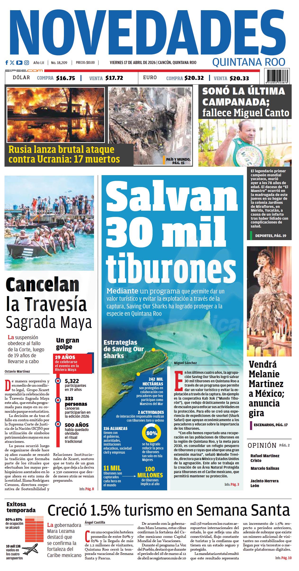Portadas de Prensa en Quintana Roo 17 de abril de 2026.