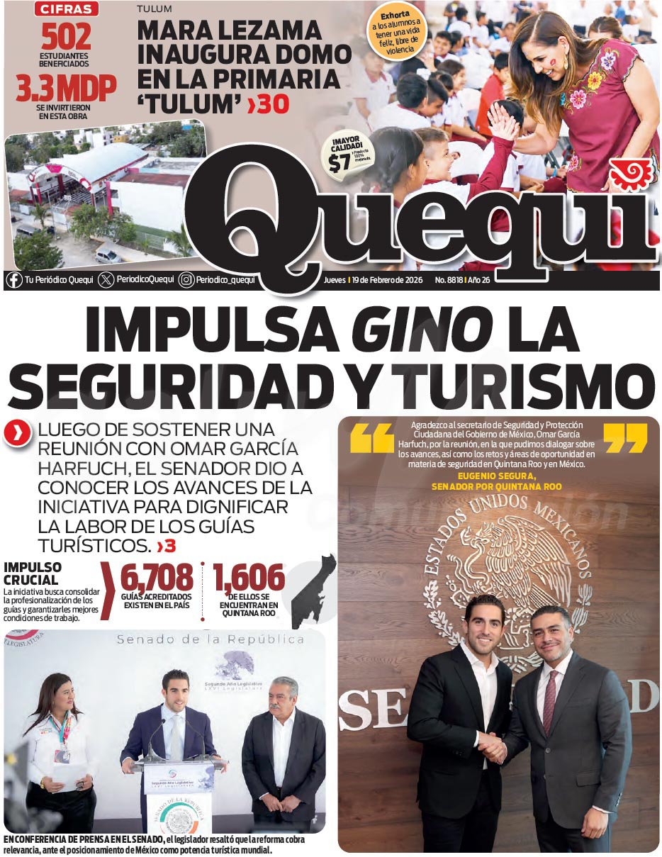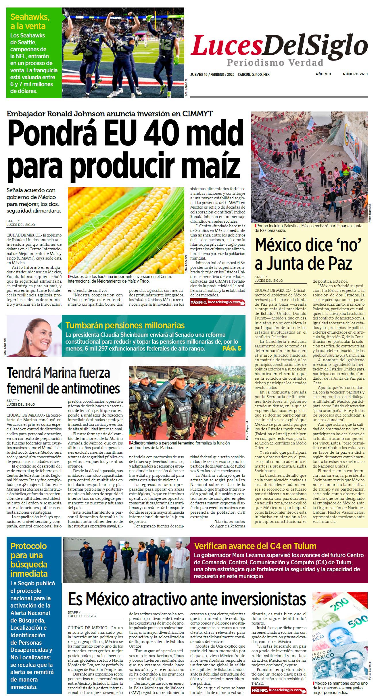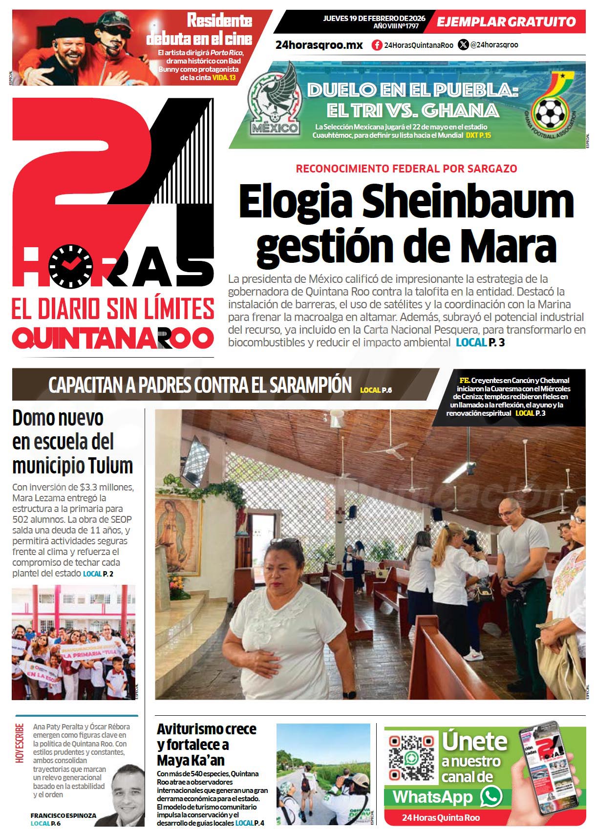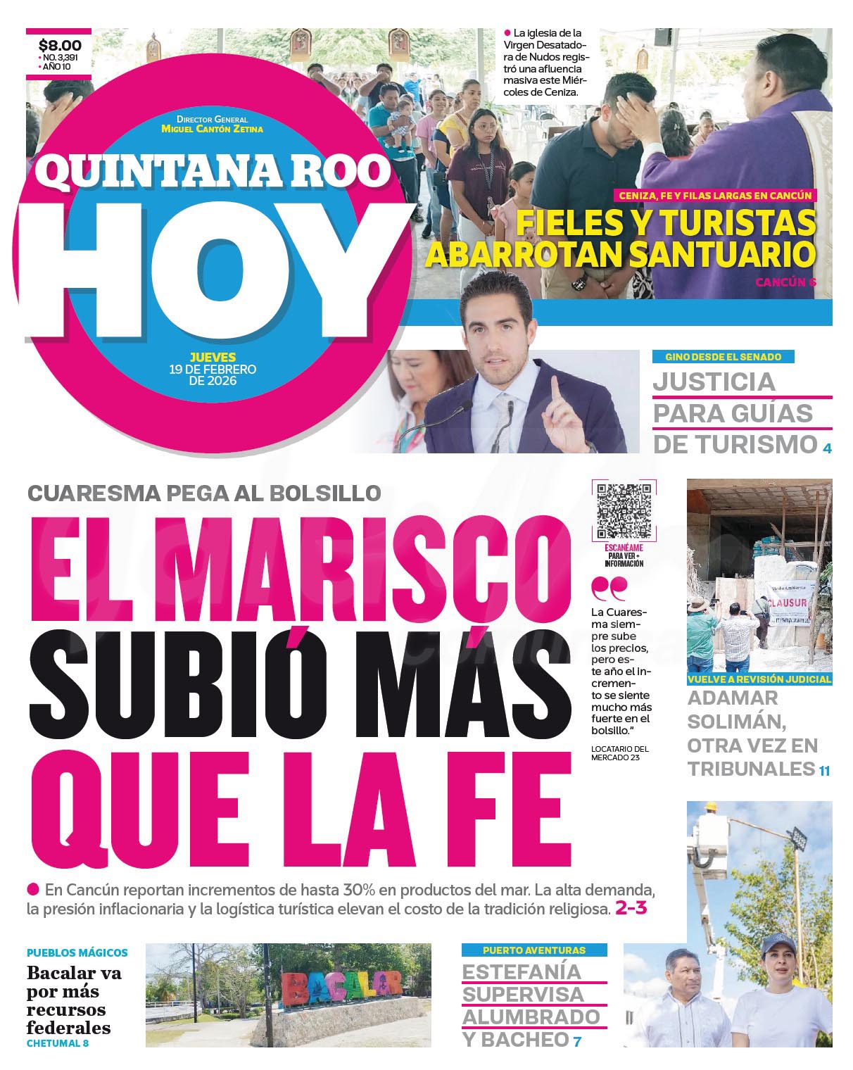 Portadas de Prensa en Quintana Roo 19 de febrero de 2026.