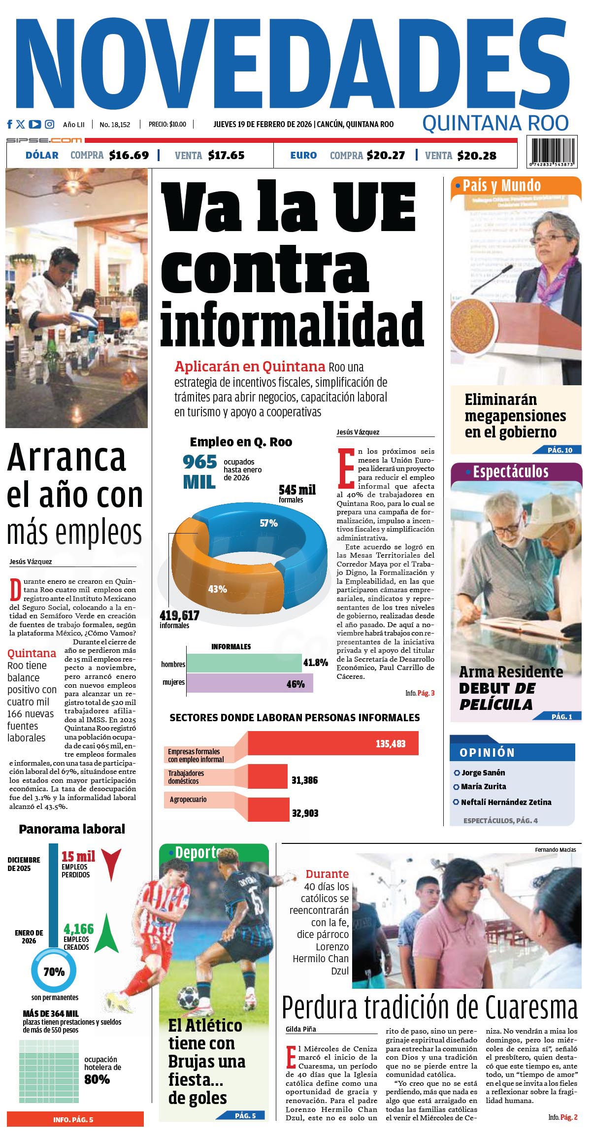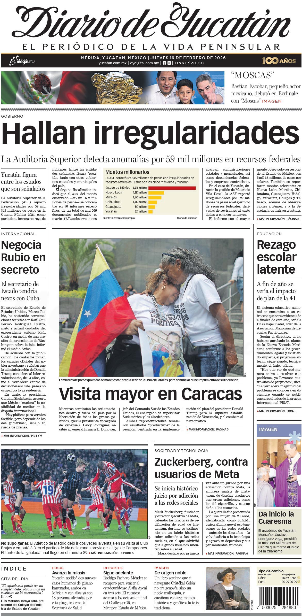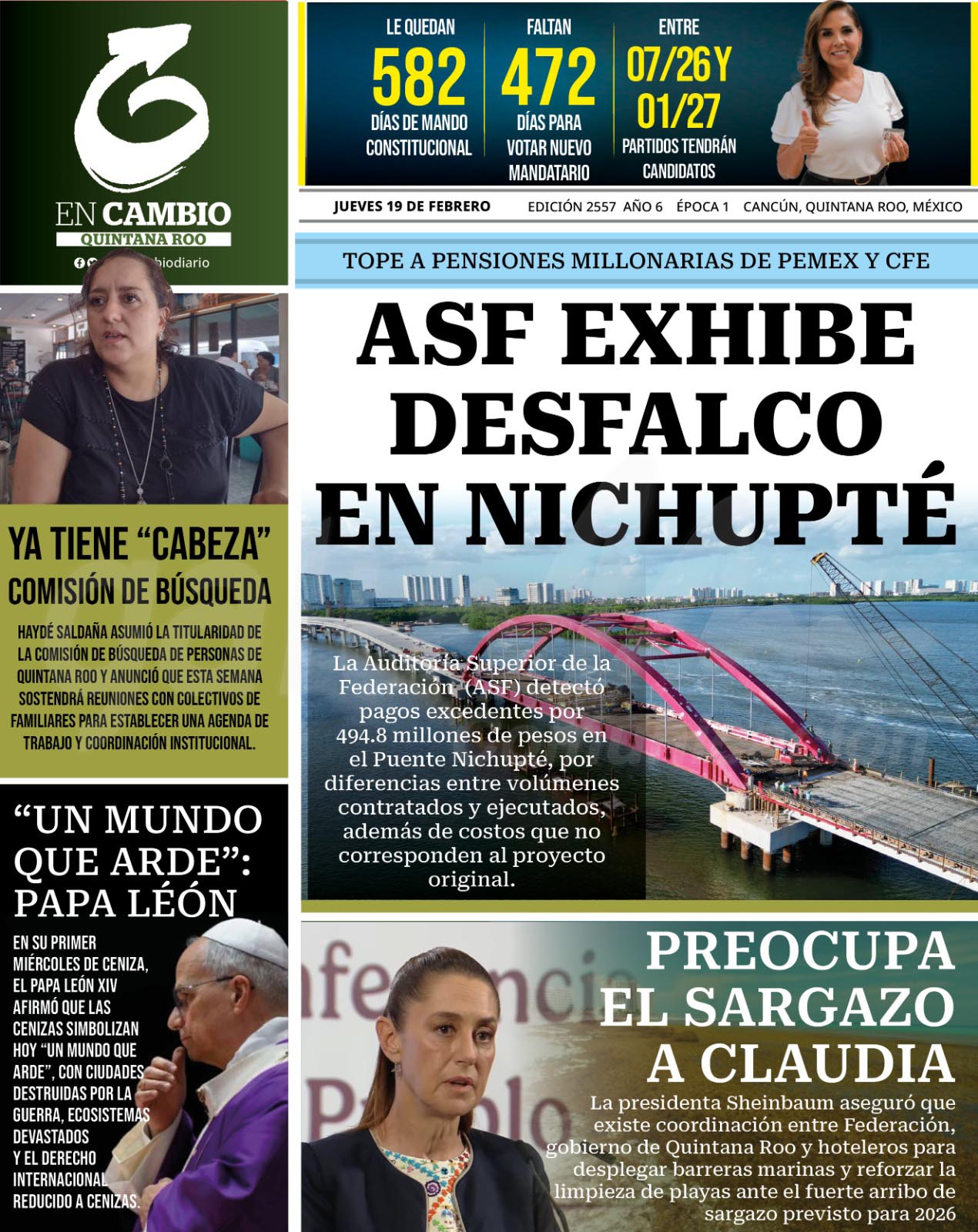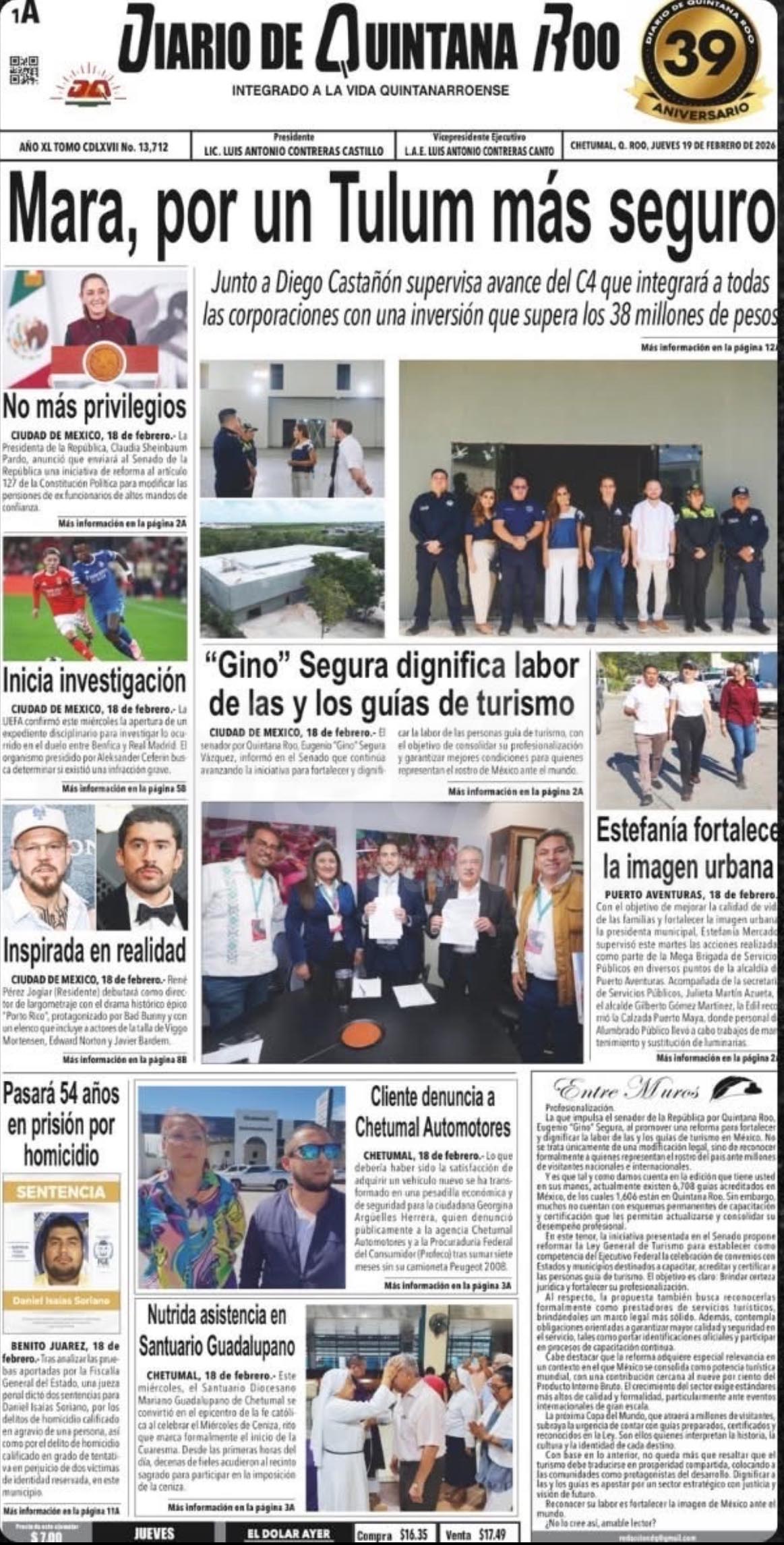 Portadas de Prensa en Quintana Roo 19 de febrero de 2026.