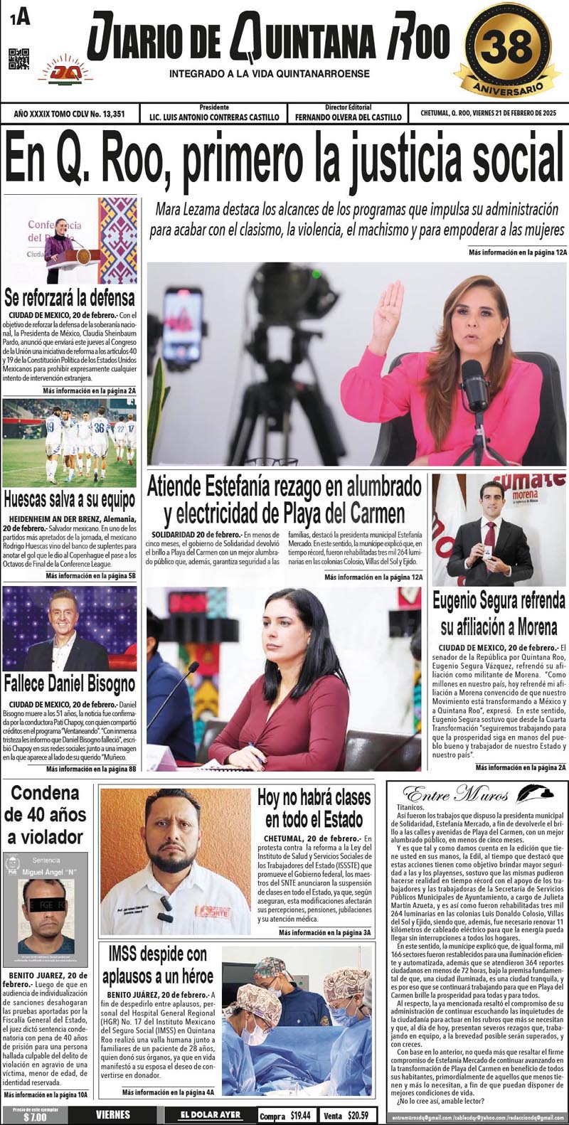 14. Portadas de Prensa en Quintana Roo 21 de febrero de 2025