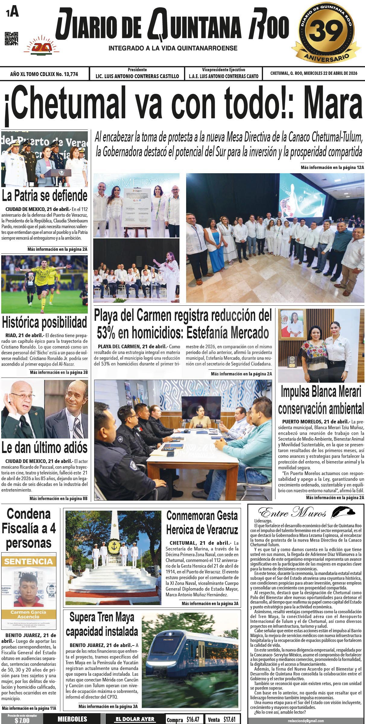 Consulta en un solo lugar las portadas de prensa de los periódicos más importantes que circulan en Quintana Roo.